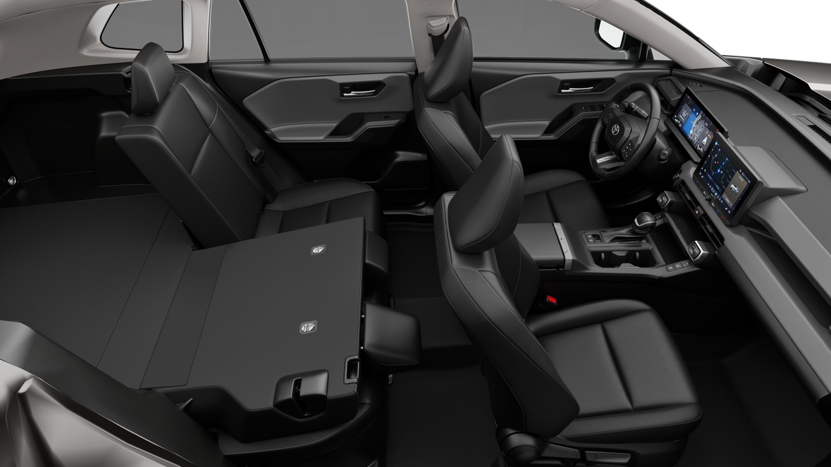 • 60/40 split reclining fold-flat rear seat with center armrest and cup holders