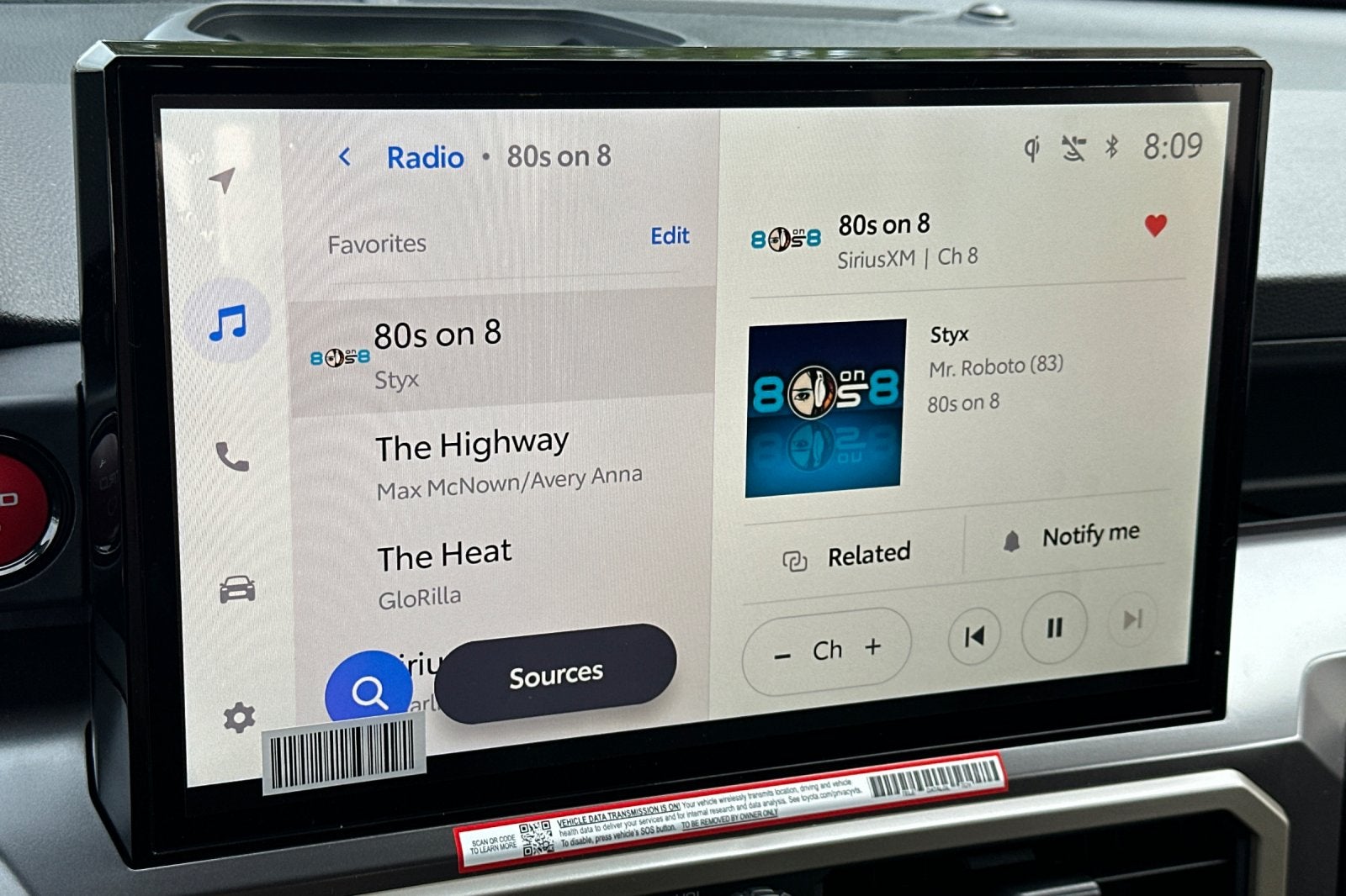 9. Apple CarPlay® requires a compatible iPhone® with an active data plan. Check compatibility at https://www.apple.com/ios/carplay/. Operability depends on network availability, a cellular connection and GPS signal. Services vary by vehicle and are subject to change at any time without notice. Data charges may apply. To learn more, go to https://www.toyota.com/audio-multimedia/. To learn more about Toyota Connected Services data collection, use, sharing and retention practices, please visit https://www.toyota.com/support/privacy-notice/. Apple CarPlay® is a registered trademark of Apple Inc.