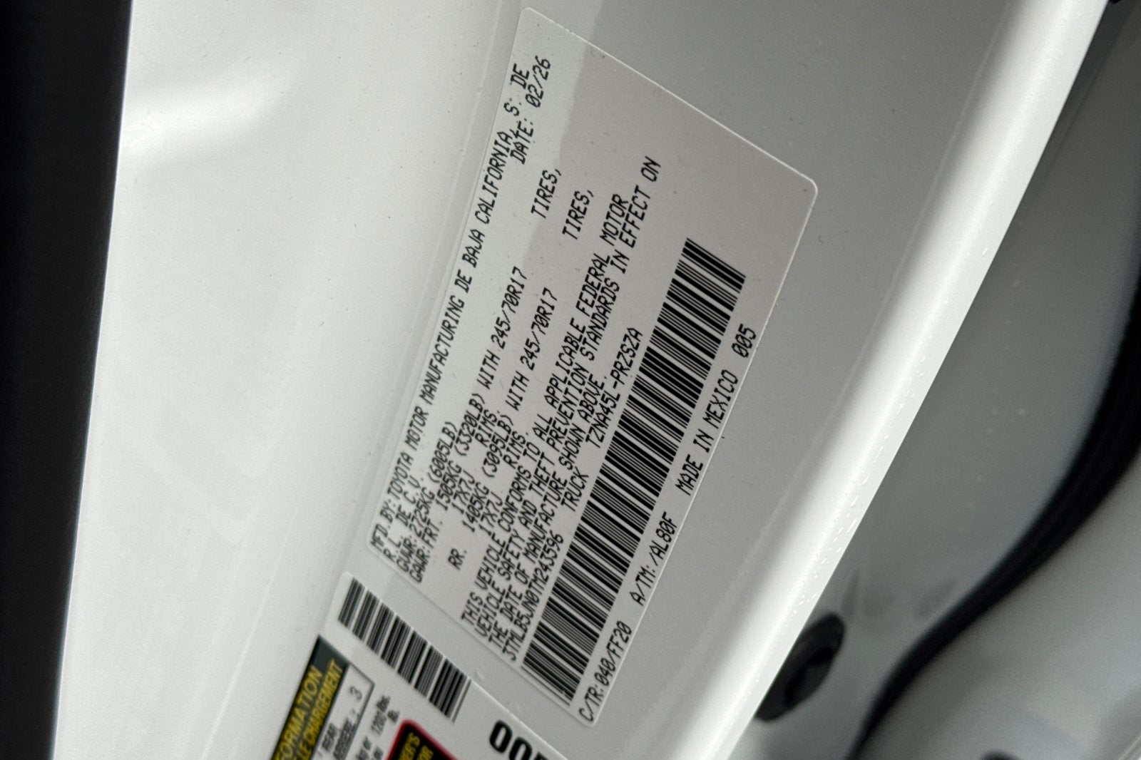 • Vehicle Name: Toyota Tacoma 4WD