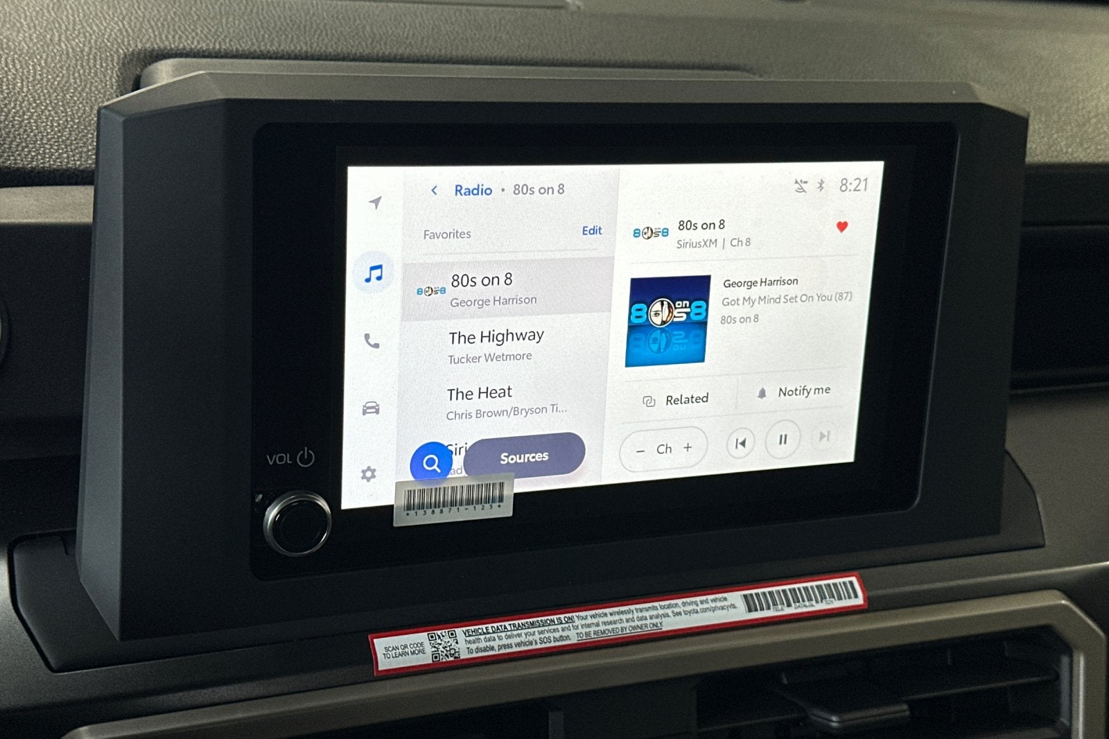 • 8-in. Toyota Audio Multimedia display with 6-speaker audio system, wireless Apple CarPlay® 11 & Android Autoâ„¢ 4 compatibility, SiriusXM® 3-month trial subscription. 56 See toyota.com/connected-services for details.