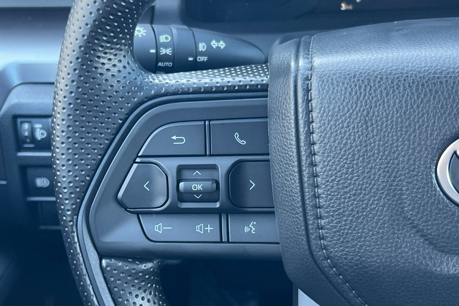 • Polyurethane manual tilt/telescopic steering wheel with phone, audio, display/infotainment, and Driver Assist controls