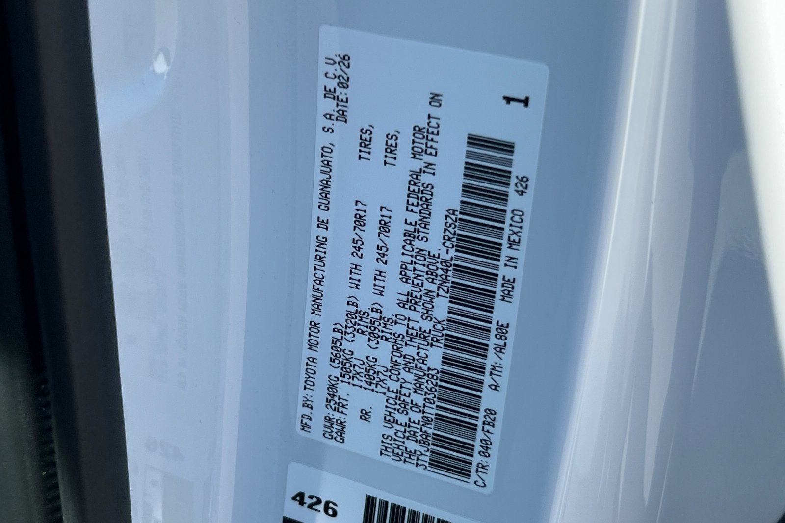 VIN: 3TYJBAFN0TT036283