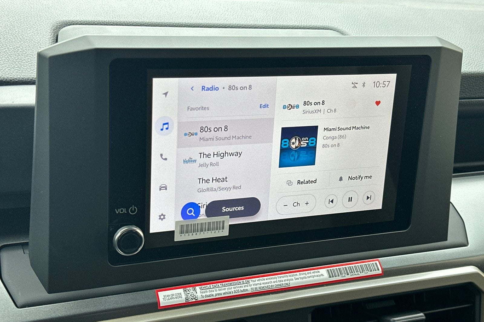 • 8-in. Toyota Audio Multimedia display with 6-speaker audio system, wireless Apple CarPlay® 11 & Android Autoâ„¢ 4 compatibility, SiriusXM® 3-month trial subscription. 56 See toyota.com/connected-services for details.