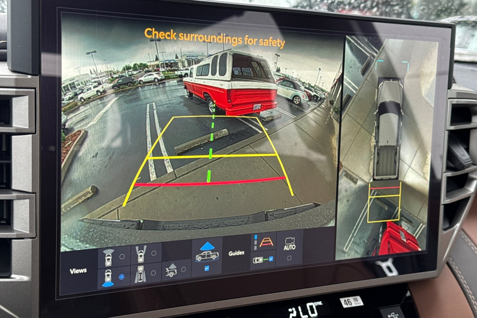 48. The Panoramic View Monitor does not provide a comprehensive view of the area surrounding your vehicle. Look around to confirm clearance. See Owner’s Manual for limitations.