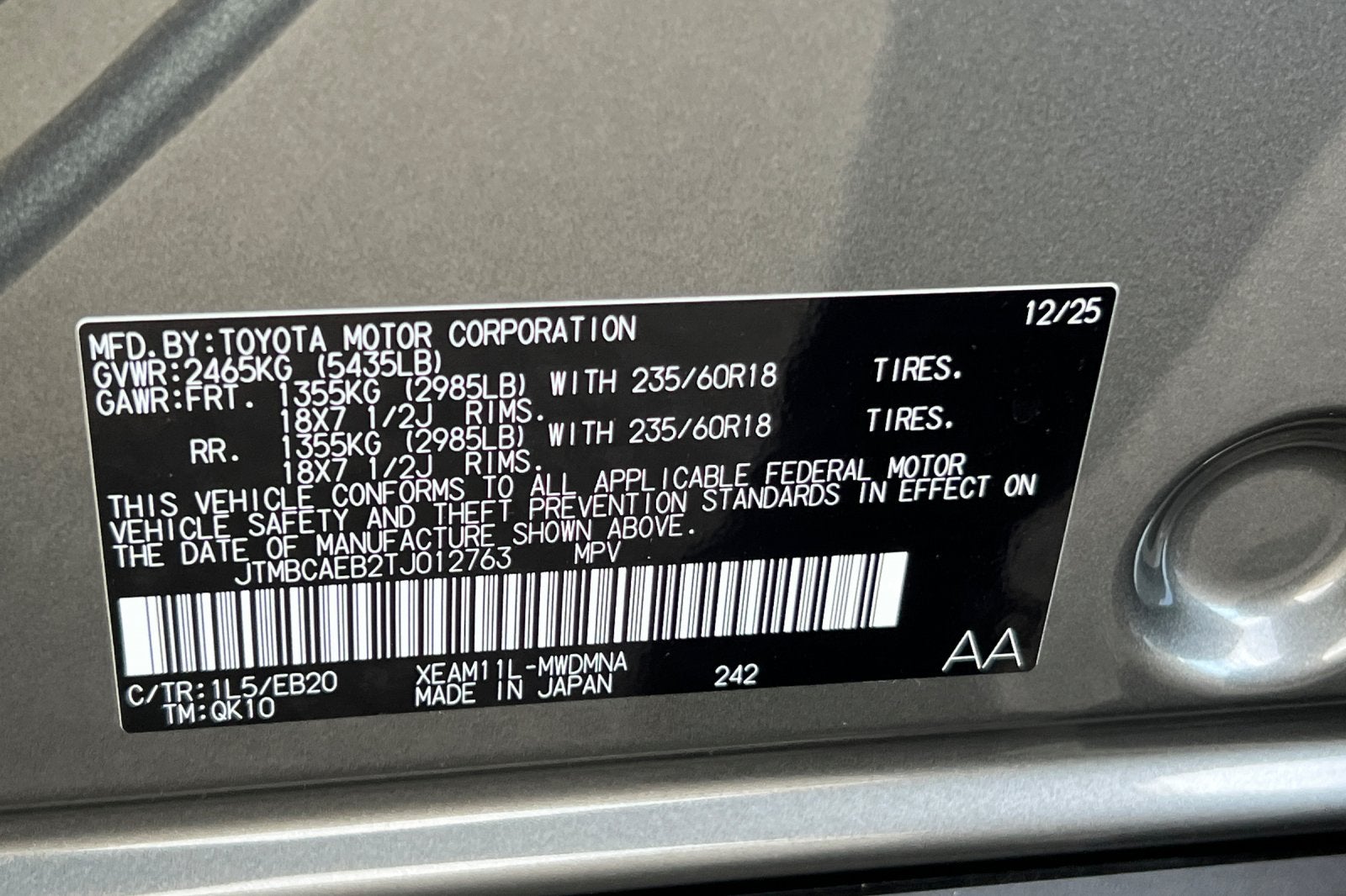 VIN: JTMBCAEB2TJ012763