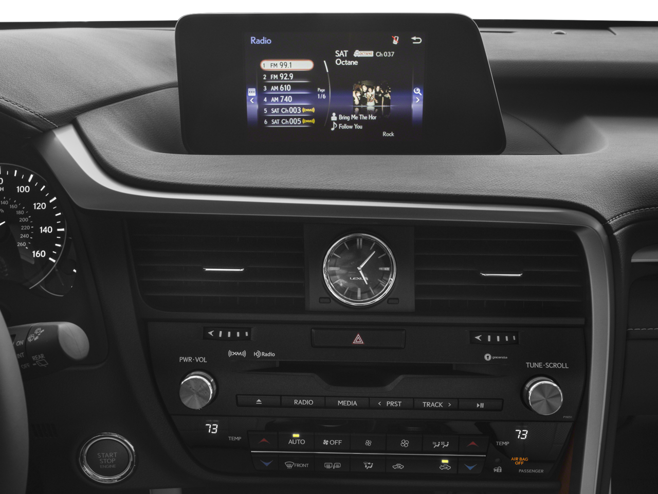 - advanced voice command casual-language voice recognition system Bluetooth® hands free phone and automatic phonebook download capabilities remote touch navigation controller HD Radio w/iTunes tagging SiriusXM NavTraffic NavWeather Sports Stocks and Fuel Prices (1-year trial data subscription included) Lexus Insider and Electro Multi Vision (EMV) display Lexus Enform Destinations Destination Assist Lexus Enform App Suite destination search Yelp iHeartRadio Facebook Places Movietickets.com OpenTable Pandora Slacker stocks fuel prices and sports Single-Disc DVD Changer