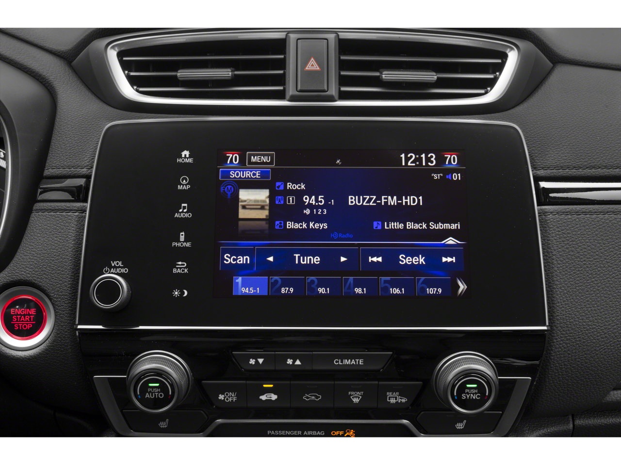 - Radio: AM/FM/HD/SiriusXM Audio System -inc: 330-Watts, 9 speakers including subwoofer, Honda satellite-linked navigation system w/voice recognition, HD digital traffic, turn-by-turn directions, 7" display w/high-resolution WVGA (800x480) electrostatic touch-screen, customizable feature settings, Bluetooth® streaming audio and HandsFreeLink, Pandora compatibility, Radio Data System (RDS), Speed-Sensitive Volume Control (SVC), USB audio interface w/1port in center console, USB smartphone/audio interface w/1.5-amp port in center console, 12-volt power outlets (front and center console), HondaLink, Apple CarPlay/Android Auto, SMS text message function and 2 ports in 2nd-row