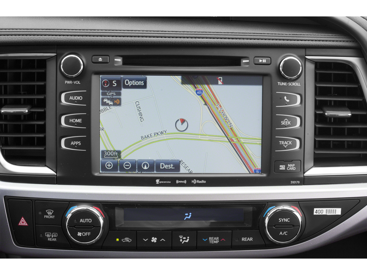 • Radio: Entune Premium Audio w/Nav & App Suite -inc: the Entune Multimedia Bundle (8" high resolution touch-screen w/split screen display, AM/FM CD player, MP3/WMA playback capability, 6 speakers, auxiliary audio jack, USB 2.0 port w/iPod connectivity and control, advanced voice recognition, hands-free phone capability, phone book access and music streaming via Bluetooth® wireless technology), Siri Eyes Free, Entune App Suite, Intelligent Touch controls, SiriusXM Satellite Radio w/3-month complimentary SirusXM All Access trial, HD Radio, HD Radio predictive traffic and Doppler weather overlay, AM/FM cache radio, Gracenotes album cover art and integrated back up camera display w/projected path