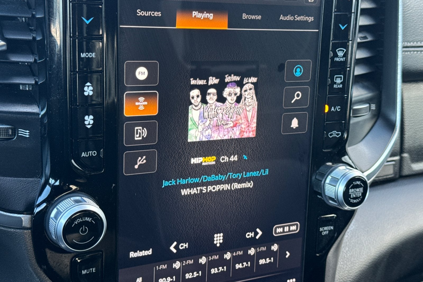 - Rear Window Defroster Blind Spot & Cross Path Detection Rain Sensitive Windshield Wipers ParkSense Front/Rear Park Assist w/Stop Rear Power Sliding Window 12" Touchscreen Display Front LED Fog Lamps LED Reflector Headlamps Foam Bottle Insert (Door Trim Panel) Radio: Uconnect 5 Nav w/12.0" Display Remote Tailgate Release Auto High Beam Headlamp Control Electric Shift On Demand Transfer Case Front Door Accent Lighting 2nd Row In Floor Storage Bins Rear Door Accent Lighting