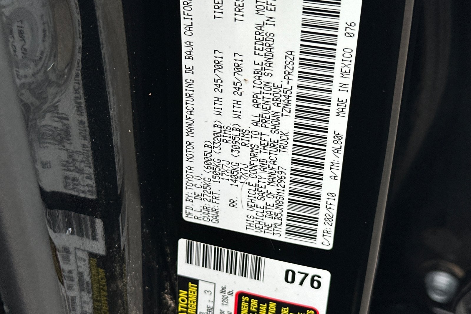 - Vehicle Name: Toyota Tacoma 4WD