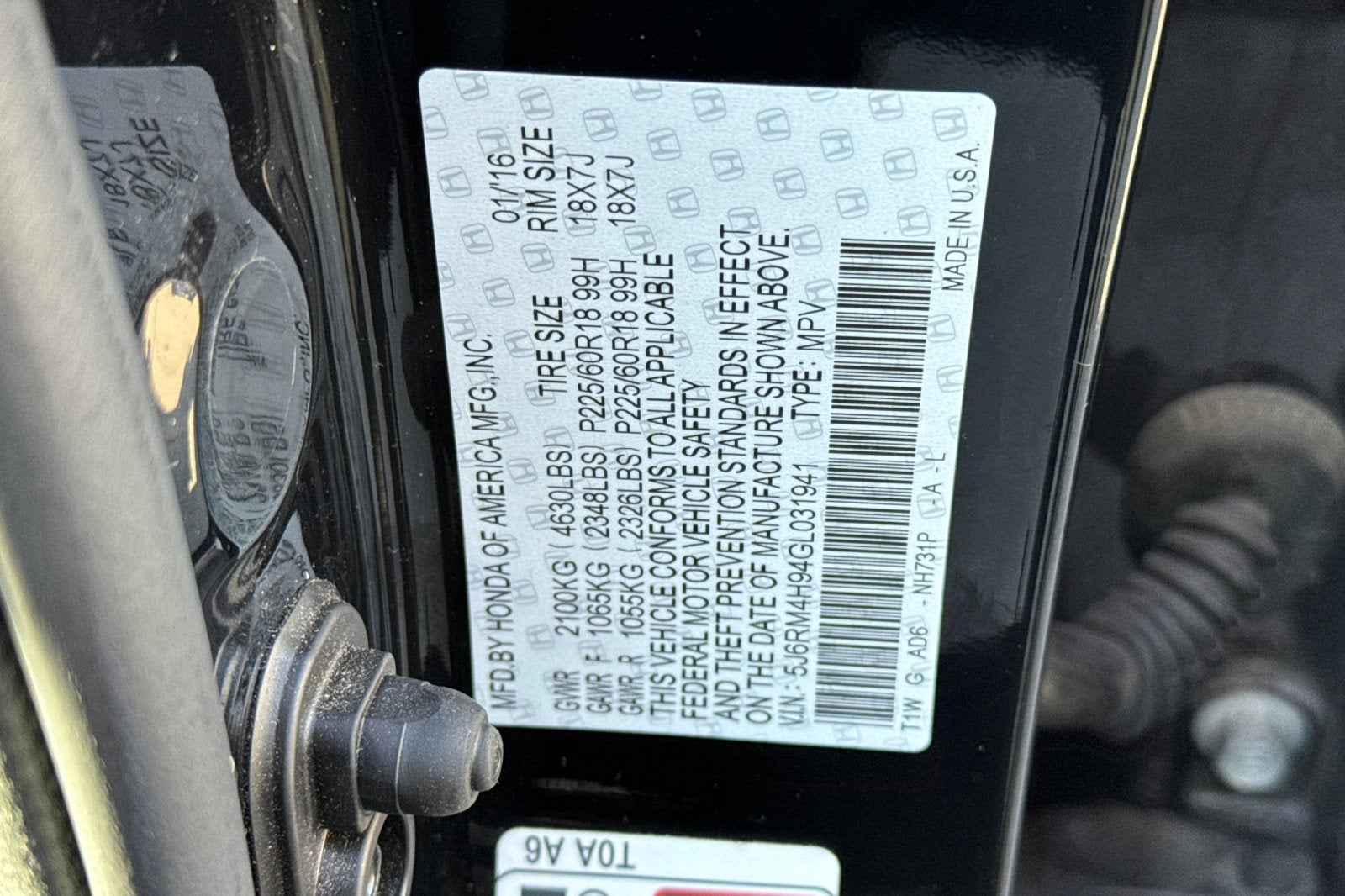 - Tires: P225/60R18 99H All-Season