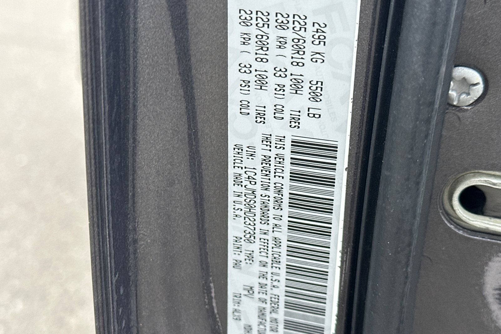 - Front Tire Size: P225/60TR18