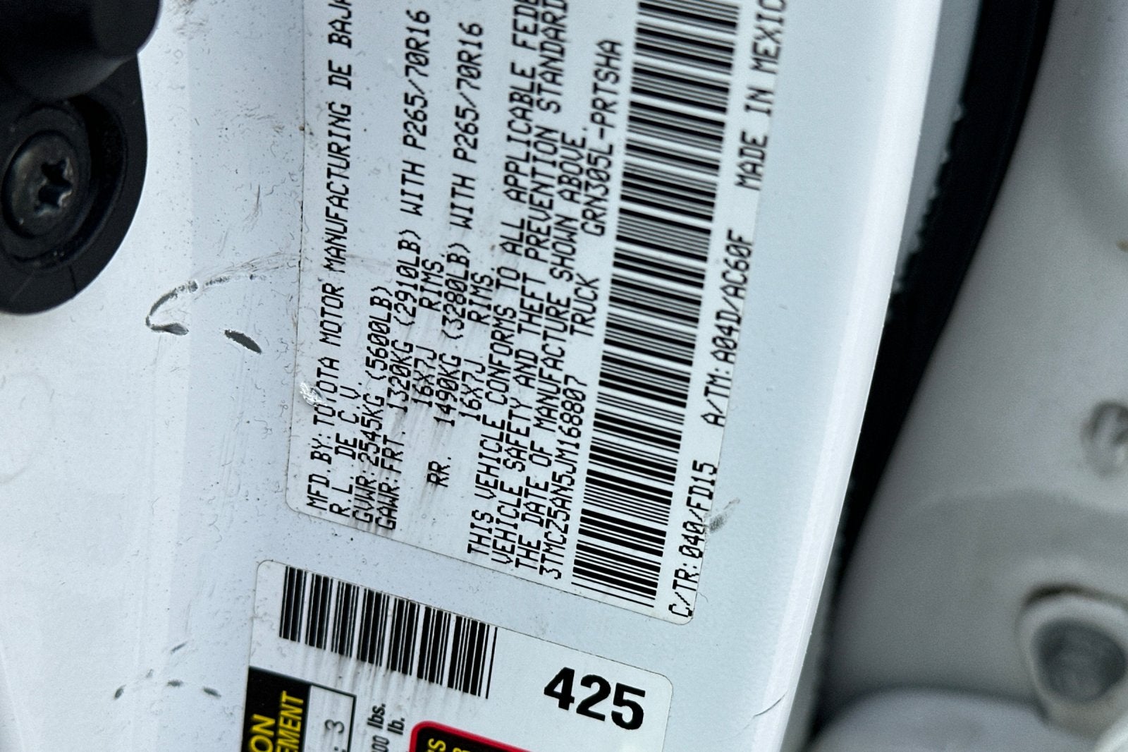 - Vehicle Name: Toyota Tacoma